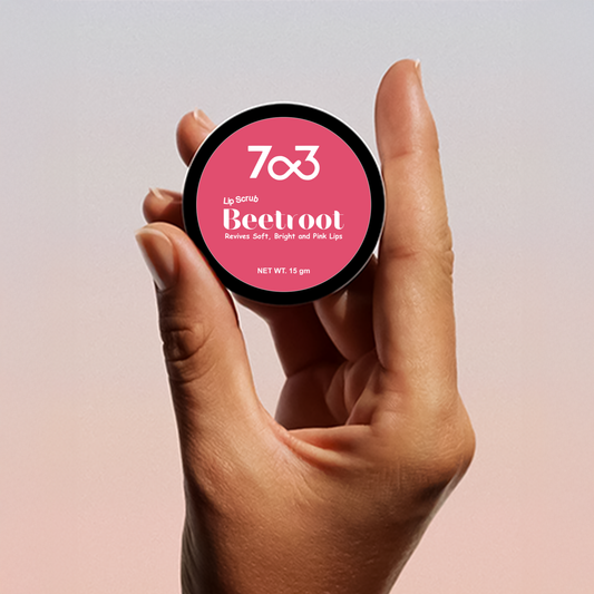 Restore the fullness of your lips and bring back their natural pink colour with the 7o3 Beetroot Lip Lightening Scrub. Specially formulated for dry, dark, pigmented, and chapped lips, this gentle but effective lip scrub with raw beetroot and exfoliating properties removes dead cells, improves texture, and lightens lip pigmentation with consistent use over time.
